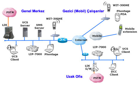 WAN üzerinden biri birine bağlanan ofisler, benzersiz bir ağ yapısı ve işlevselliği ile tek bir Çağrı Sunucusu ile kusursuz bir iletişim ağı oluştururlar. İletişim masraflarınızı en aza indirirken merkezi Çağrı Sunucusunun tüm özellikleri iletişim ağındaki bütün ögeler için mevcut olur ve uzak ağ geçitleri LCR tabloları yardımıyla ücretsiz görüşme olanakları sağlanır. Çok büyük işletmeler yada mevcut LG-Ericsson sistemlerinde IPECS ağ yapısı kusursuz bir haberleşme ağı ile tek bir sistem gibi yapılandırılabilmektedir.